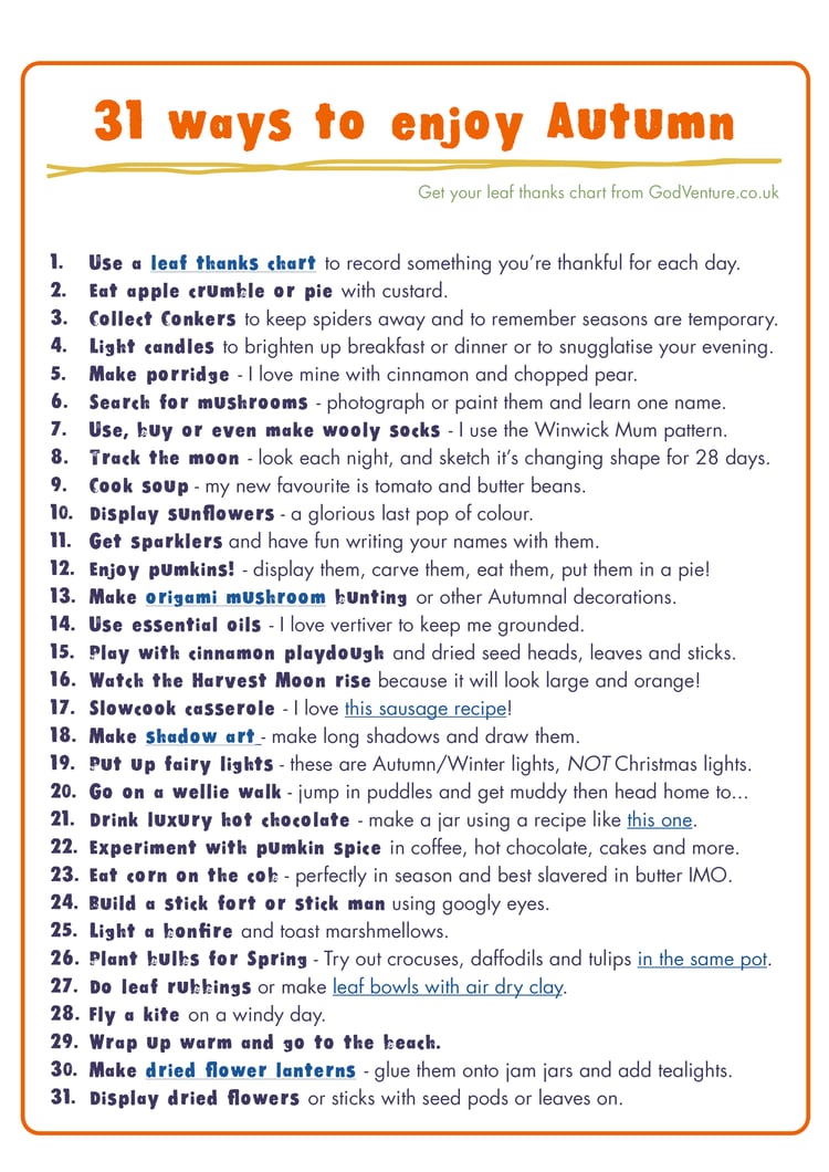 Perfect for noting something you're thankful for every day (or as often as you choose!), these charts give you a space for each day in the month. I fill mine in more days than I don't, which means I'm more thankful than not ;-)