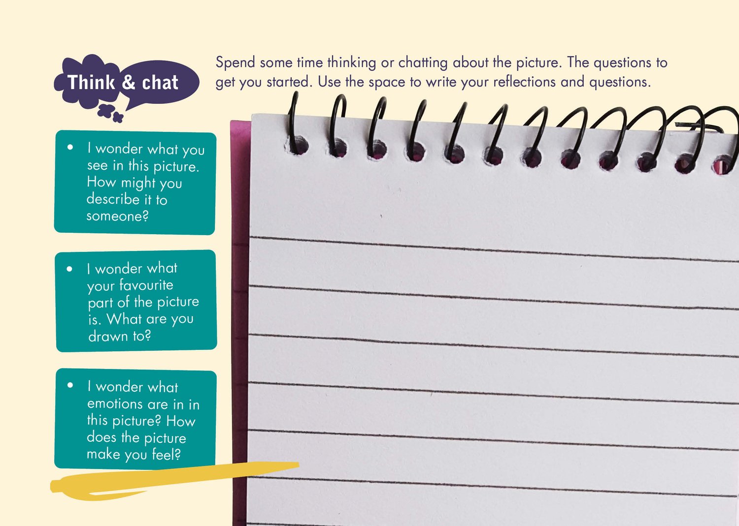 There's lots of space to write your thoughts, ideas, reflections and questions plus a whole page for you to create a visual response too, maybe your own art, photo or picture of a model you've made.