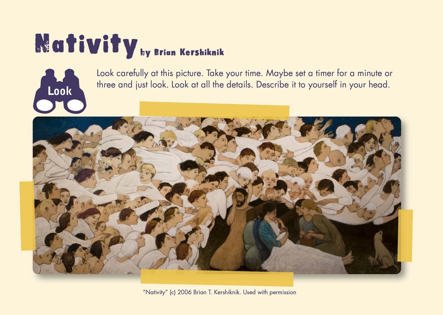 - Nativity by Brian Kershisnik - a stunning piece depicting hundreds of angels looking on at the birth of Jesus - includes a dog and her pups!
